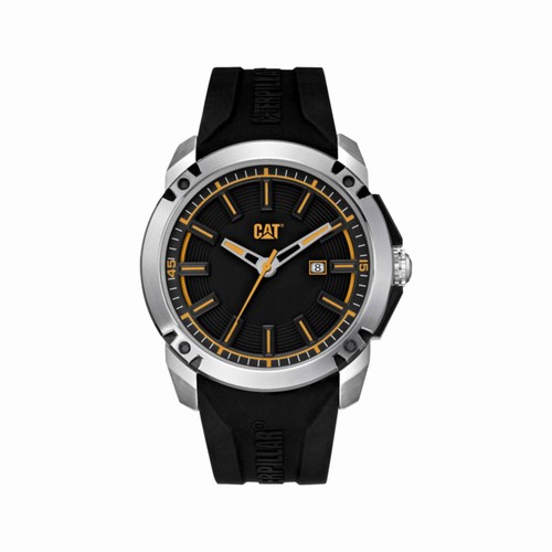 met zwart silicone armband en zwarte wijzerplaat.